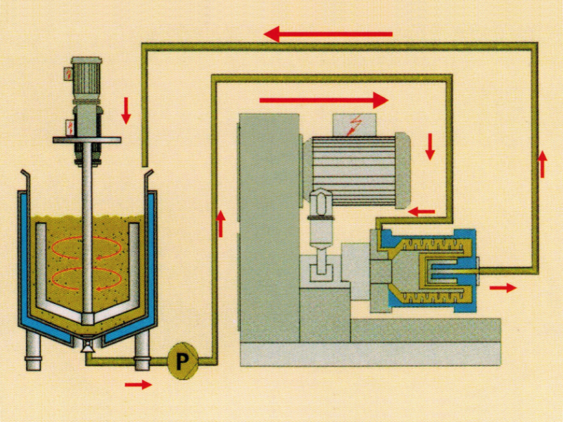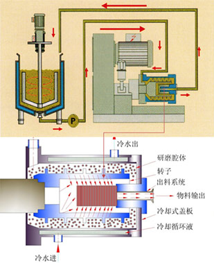 可實現低溫砂磨 縮短漿料在磨腔內的滯留時間,有效抑制溫度上升。 通過循環冷卻水的冷卻,可實現低溫砂磨。 |