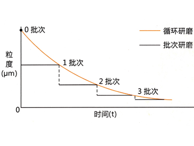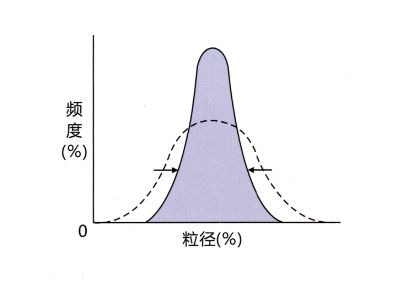 ![]() 粒度分布 ![]() 相比傳統磨機,即使在相同的平均粒徑,它可以得到集中的粒度分布。 |
